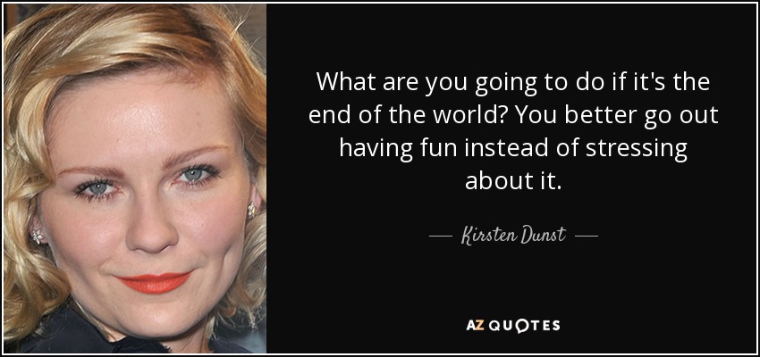 What are you going to do if it's the end of the world? You better go out having fun instead of stressing about it.
