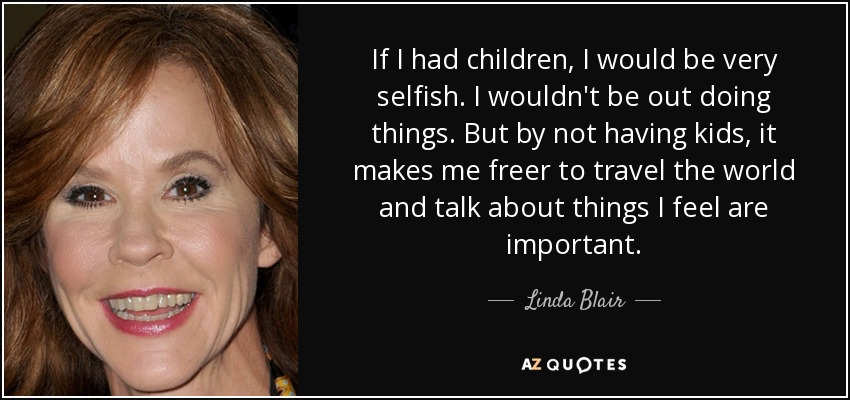 If I had children, I would be very selfish. I wouldn't be out doing things. But by not having kids, it makes me freer to travel the world and talk about things I feel are important.