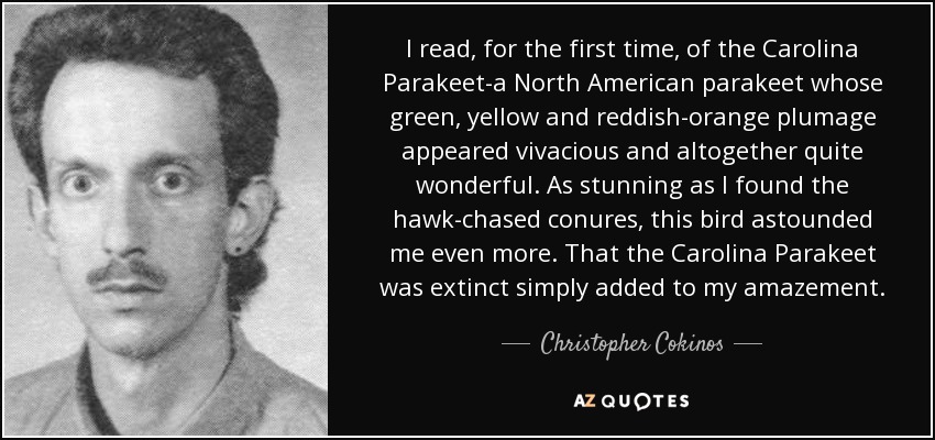 I read, for the first time, of the Carolina Parakeet-a North American parakeet whose green, yellow and reddish-orange plumage appeared vivacious and altogether quite wonderful. As stunning as I found the hawk-chased conures, this bird astounded me even more. That the Carolina Parakeet was extinct simply added to my amazement.