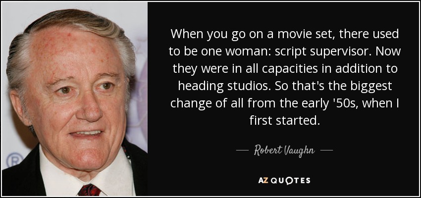 When you go on a movie set, there used to be one woman: script supervisor. Now they were in all capacities in addition to heading studios. So that's the biggest change of all from the early '50s, when I first started.