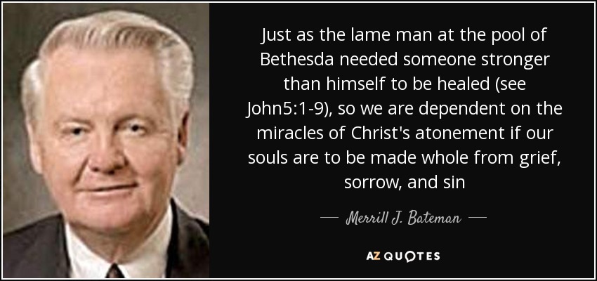 Just as the lame man at the pool of Bethesda needed someone stronger than himself to be healed (see John5:1-9), so we are dependent on the miracles of Christ's atonement if our souls are to be made whole from grief, sorrow, and sin