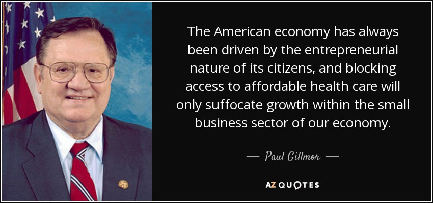 The American economy has always been driven by the entrepreneurial nature of its citizens, and blocking access to affordable health care will only suffocate growth within the small business sector of our economy.