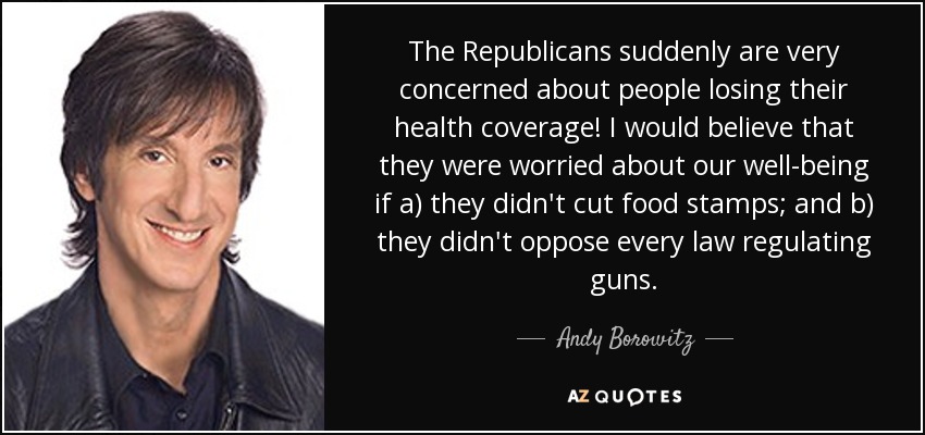 The Republicans suddenly are very concerned about people losing their health coverage! I would believe that they were worried about our well-being if a) they didn't cut food stamps; and b) they didn't oppose every law regulating guns.