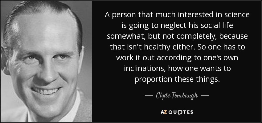 A person that much interested in science is going to neglect his social life somewhat, but not completely, because that isn't healthy either. So one has to work it out according to one's own inclinations, how one wants to proportion these things.