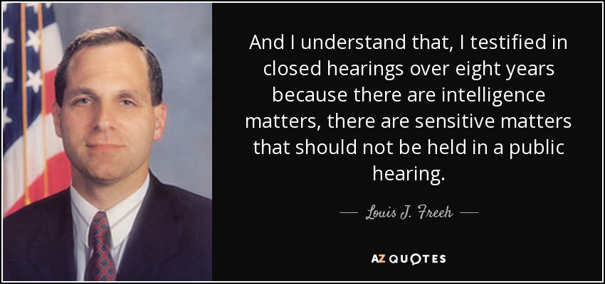 And I understand that, I testified in closed hearings over eight years because there are intelligence matters, there are sensitive matters that should not be held in a public hearing.