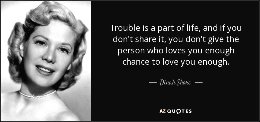 Trouble is a part of life, and if you don't share it, you don't give the person who loves you enough chance to love you enough.