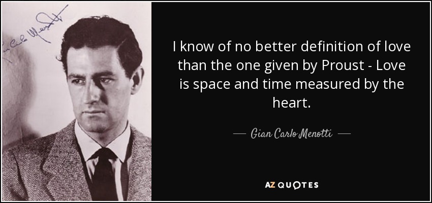 I know of no better definition of love than the one given by Proust - Love is space and time measured by the heart.