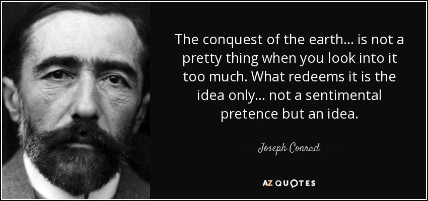 The conquest of the earth... is not a pretty thing when you look into it too much. What redeems it is the idea only... not a sentimental pretence but an idea.