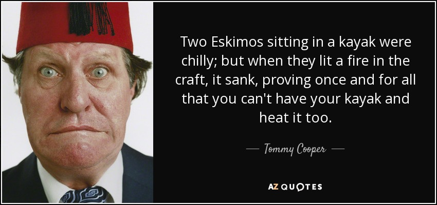 Two Eskimos sitting in a kayak were chilly; but when they lit a fire in the craft, it sank, proving once and for all that you can't have your kayak and heat it too.