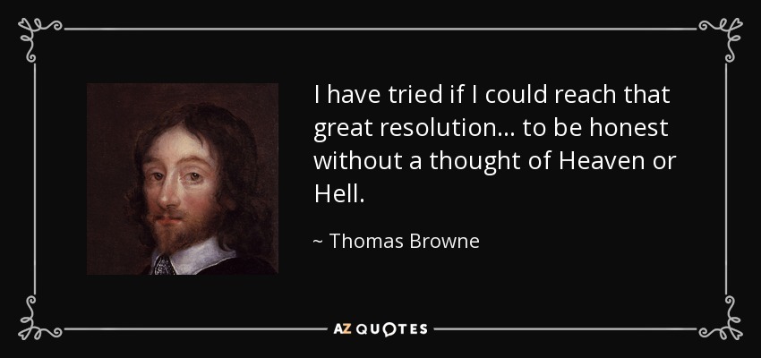 I have tried if I could reach that great resolution . . . to be honest without a thought of Heaven or Hell.