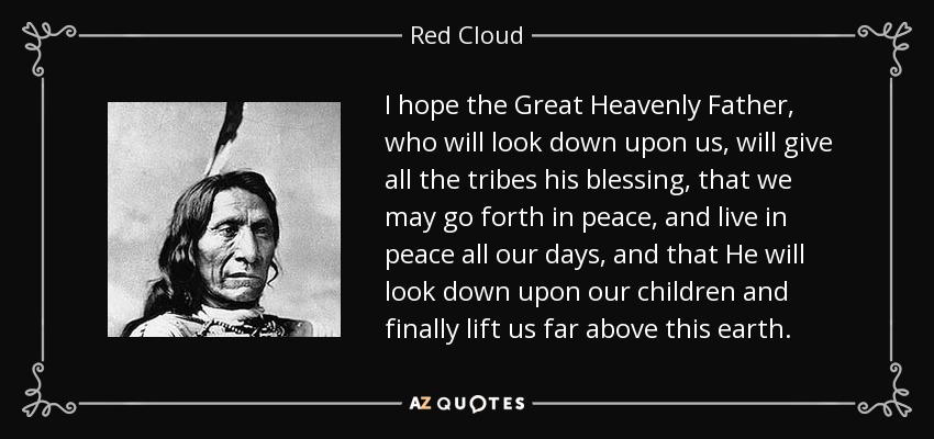 I hope the Great Heavenly Father, who will look down upon us, will give all the tribes his blessing, that we may go forth in peace, and live in peace all our days, and that He will look down upon our children and finally lift us far above this earth.