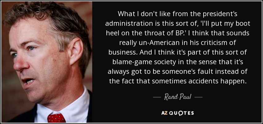 What I don't like from the president's administration is this sort of, 'I'll put my boot heel on the throat of BP.' I think that sounds really un-American in his criticism of business. And I think it's part of this sort of blame-game society in the sense that it's always got to be someone's fault instead of the fact that sometimes accidents happen.