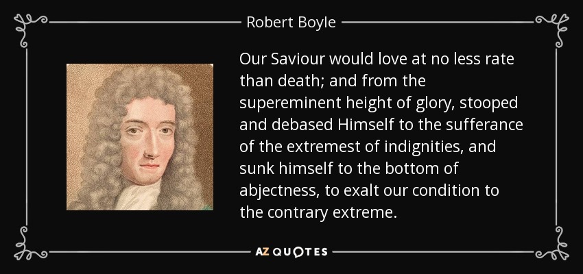 Our Saviour would love at no less rate than death; and from the supereminent height of glory, stooped and debased Himself to the sufferance of the extremest of indignities, and sunk himself to the bottom of abjectness, to exalt our condition to the contrary extreme.