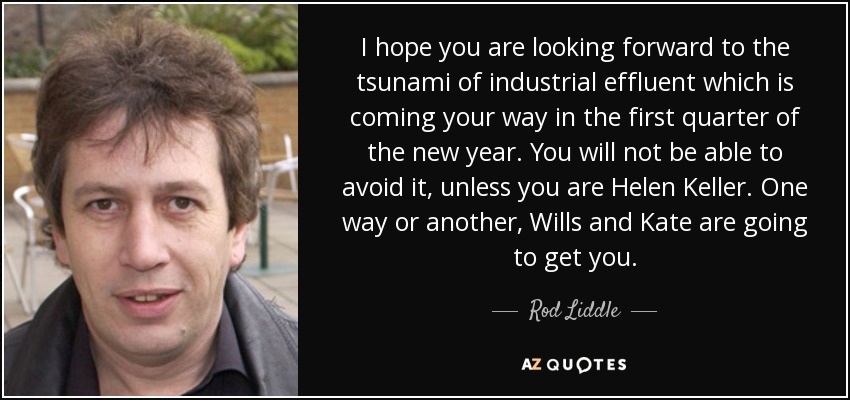 I hope you are looking forward to the tsunami of industrial effluent which is coming your way in the first quarter of the new year. You will not be able to avoid it, unless you are Helen Keller. One way or another, Wills and Kate are going to get you.