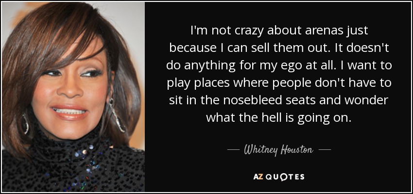 I'm not crazy about arenas just because I can sell them out. It doesn't do anything for my ego at all. I want to play places where people don't have to sit in the nosebleed seats and wonder what the hell is going on.