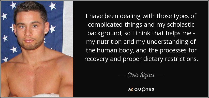 I have been dealing with those types of complicated things and my scholastic background, so I think that helps me - my nutrition and my understanding of the human body, and the processes for recovery and proper dietary restrictions.