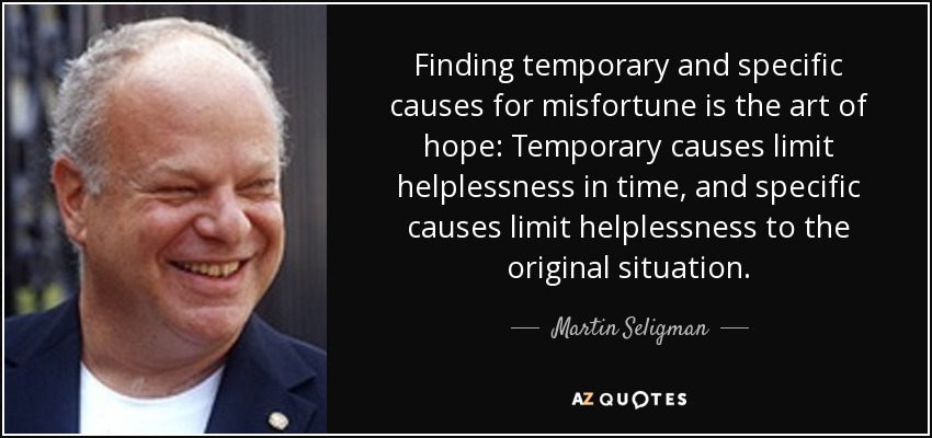 Finding temporary and specific causes for misfortune is the art of hope: Temporary causes limit helplessness in time, and specific causes limit helplessness to the original situation.
