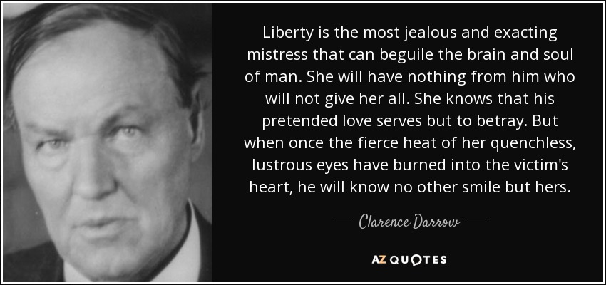 Liberty is the most jealous and exacting mistress that can beguile the brain and soul of man. She will have nothing from him who will not give her all. She knows that his pretended love serves but to betray. But when once the fierce heat of her quenchless, lustrous eyes have burned into the victim's heart, he will know no other smile but hers.