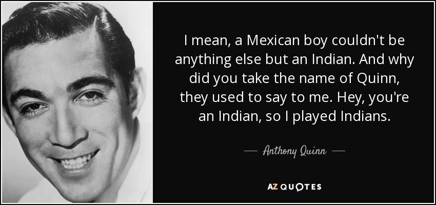 I mean, a Mexican boy couldn't be anything else but an Indian. And why did you take the name of Quinn, they used to say to me. Hey, you're an Indian, so I played Indians.