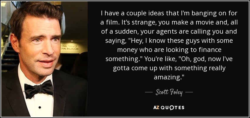 I have a couple ideas that I'm banging on for a film. It's strange, you make a movie and, all of a sudden, your agents are calling you and saying, "Hey, I know these guys with some money who are looking to finance something." You're like, "Oh, god, now I've gotta come up with something really amazing."