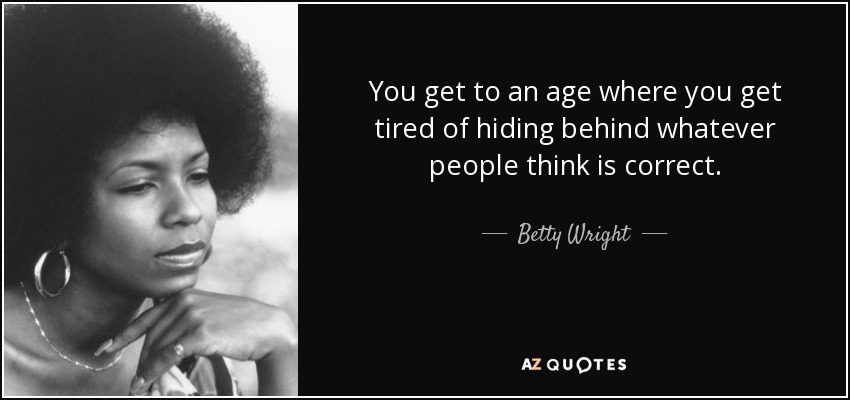 You get to an age where you get tired of hiding behind whatever people think is correct.