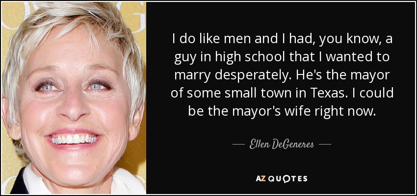 I do like men and I had, you know, a guy in high school that I wanted to marry desperately. He's the mayor of some small town in Texas. I could be the mayor's wife right now.