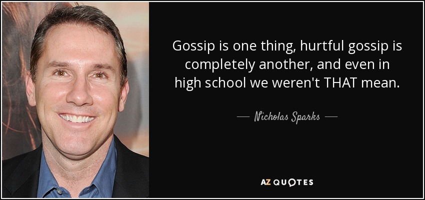 Gossip is one thing, hurtful gossip is completely another, and even in high school we weren't THAT mean.