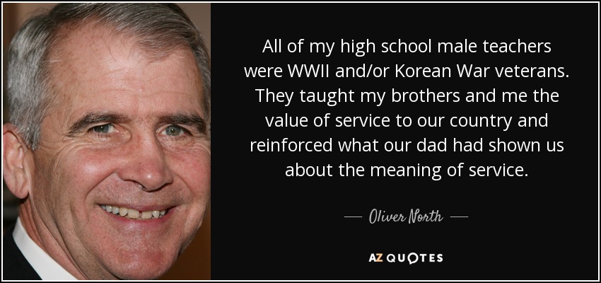 All of my high school male teachers were WWII and/or Korean War veterans. They taught my brothers and me the value of service to our country and reinforced what our dad had shown us about the meaning of service.