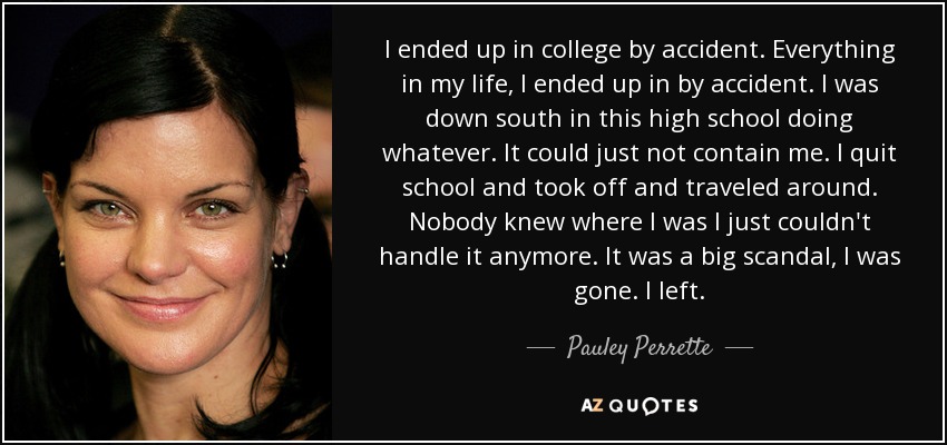 I ended up in college by accident. Everything in my life, I ended up in by accident. I was down south in this high school doing whatever. It could just not contain me. I quit school and took off and traveled around. Nobody knew where I was I just couldn't handle it anymore. It was a big scandal, I was gone. I left.