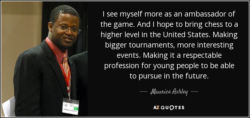 I see myself more as an ambassador of the game. And I hope to bring chess to a higher level in the United States. Making bigger tournaments, more interesting events. Making it a respectable profession for young people to be able to pursue in the future.