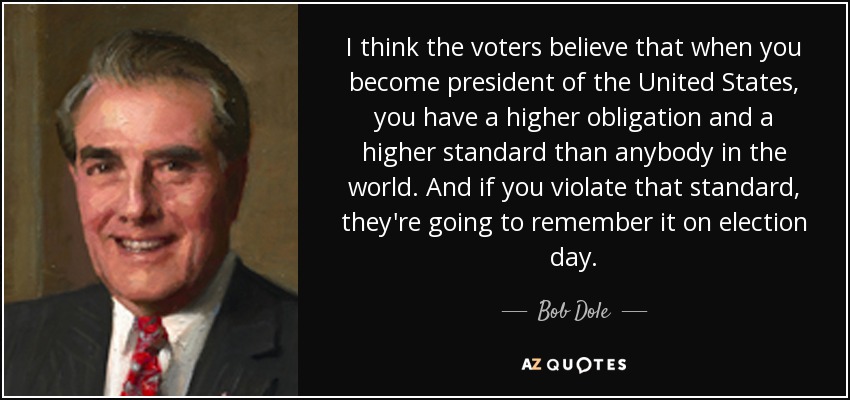 I think the voters believe that when you become president of the United States, you have a higher obligation and a higher standard than anybody in the world. And if you violate that standard, they're going to remember it on election day.