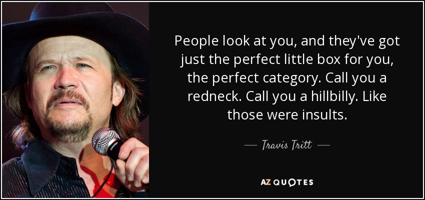 People look at you, and they've got just the perfect little box for you, the perfect category. Call you a redneck. Call you a hillbilly. Like those were insults.