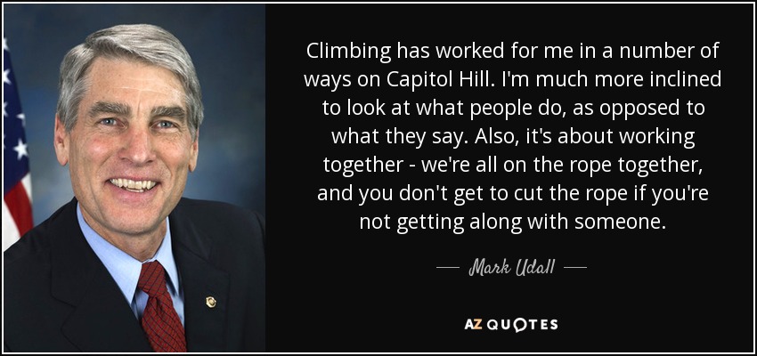 Climbing has worked for me in a number of ways on Capitol Hill. I'm much more inclined to look at what people do, as opposed to what they say. Also, it's about working together - we're all on the rope together, and you don't get to cut the rope if you're not getting along with someone.