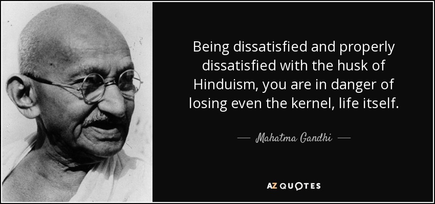 Being dissatisfied and properly dissatisfied with the husk of Hinduism, you are in danger of losing even the kernel, life itself.
