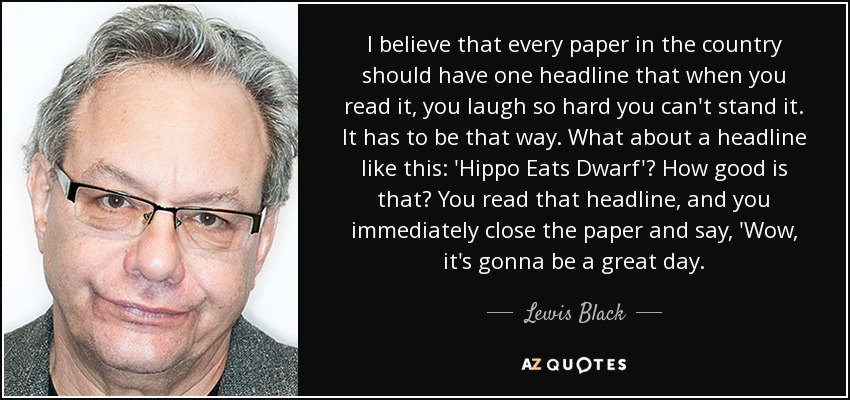I believe that every paper in the country should have one headline that when you read it, you laugh so hard you can't stand it. It has to be that way. What about a headline like this: 'Hippo Eats Dwarf'? How good is that? You read that headline, and you immediately close the paper and say, 'Wow, it's gonna be a great day.