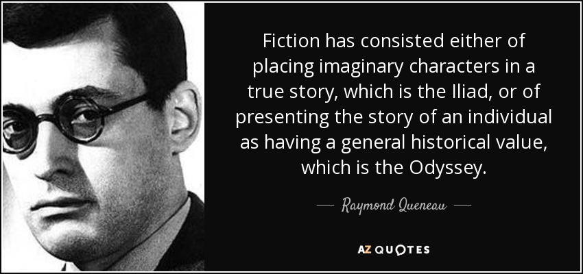 Fiction has consisted either of placing imaginary characters in a true story, which is the Iliad, or of presenting the story of an individual as having a general historical value, which is the Odyssey.