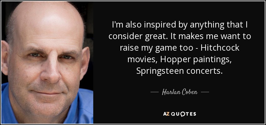 I'm also inspired by anything that I consider great. It makes me want to raise my game too - Hitchcock movies, Hopper paintings, Springsteen concerts.
