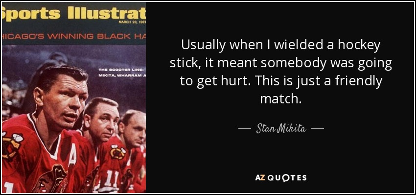 Usually when I wielded a hockey stick, it meant somebody was going to get hurt. This is just a friendly match.