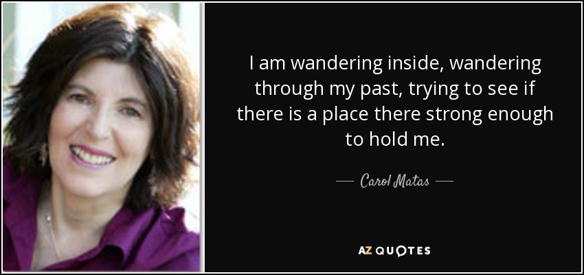 I am wandering inside, wandering through my past, trying to see if there is a place there strong enough to hold me.