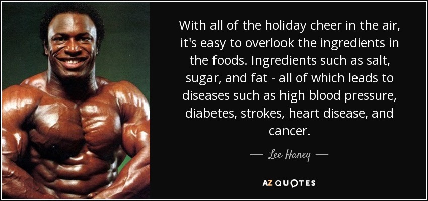 With all of the holiday cheer in the air, it's easy to overlook the ingredients in the foods. Ingredients such as salt, sugar, and fat - all of which leads to diseases such as high blood pressure, diabetes, strokes, heart disease, and cancer.