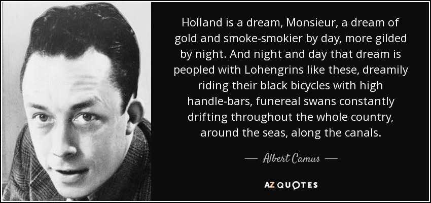 Holland is a dream, Monsieur, a dream of gold and smoke-smokier by day, more gilded by night. And night and day that dream is peopled with Lohengrins like these, dreamily riding their black bicycles with high handle-bars, funereal swans constantly drifting throughout the whole country, around the seas, along the canals.