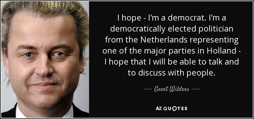 I hope - I'm a democrat. I'm a democratically elected politician from the Netherlands representing one of the major parties in Holland - I hope that I will be able to talk and to discuss with people.