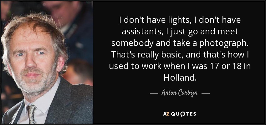I don't have lights, I don't have assistants, I just go and meet somebody and take a photograph. That's really basic, and that's how I used to work when I was 17 or 18 in Holland.