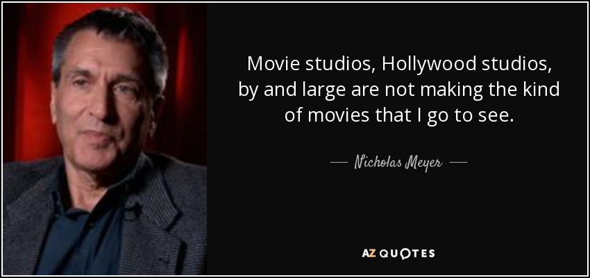 Movie studios, Hollywood studios, by and large are not making the kind of movies that I go to see.