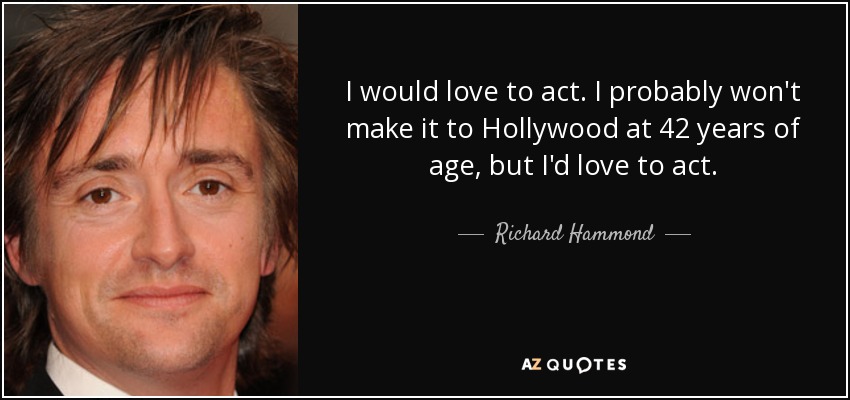 I would love to act. I probably won't make it to Hollywood at 42 years of age, but I'd love to act.