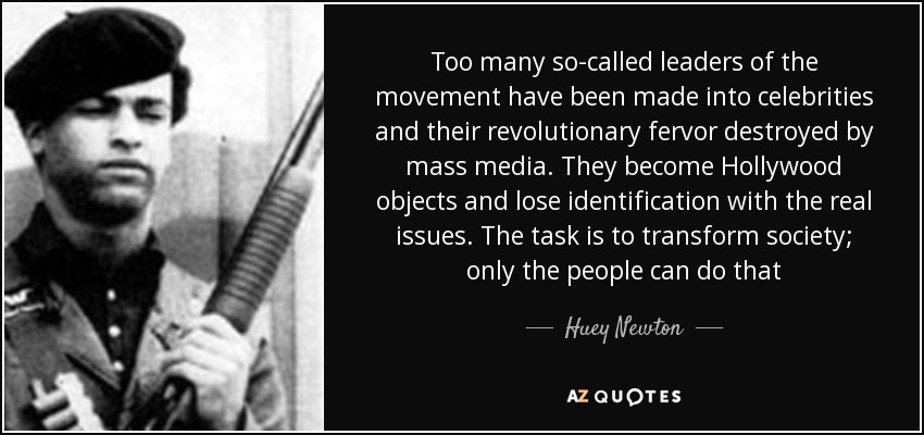 Too many so-called leaders of the movement have been made into celebrities and their revolutionary fervor destroyed by mass media. They become Hollywood objects and lose identification with the real issues. The task is to transform society; only the people can do that