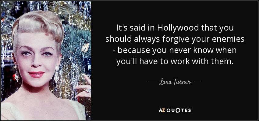 It's said in Hollywood that you should always forgive your enemies - because you never know when you'll have to work with them.