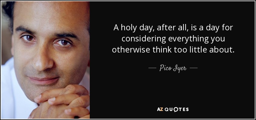 A holy day, after all, is a day for considering everything you otherwise think too little about.