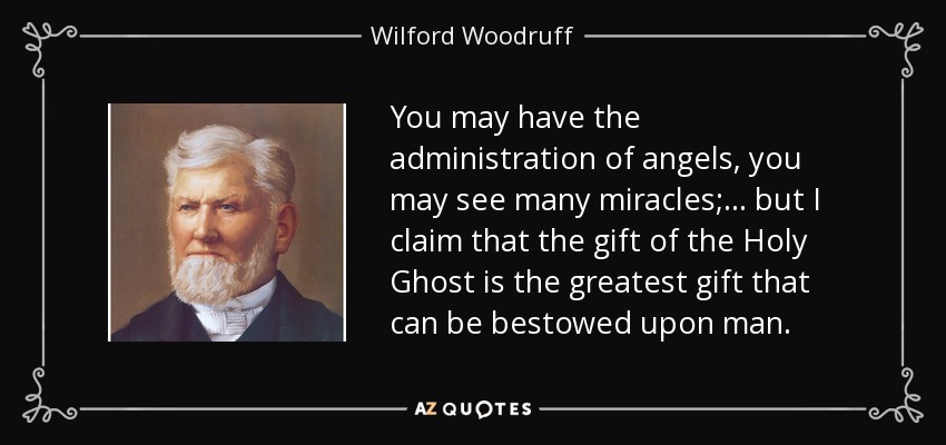 You may have the administration of angels, you may see many miracles; . . . but I claim that the gift of the Holy Ghost is the greatest gift that can be bestowed upon man.