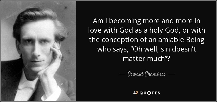 Am I becoming more and more in love with God as a holy God, or with the conception of an amiable Being who says, “Oh well, sin doesn’t matter much”?